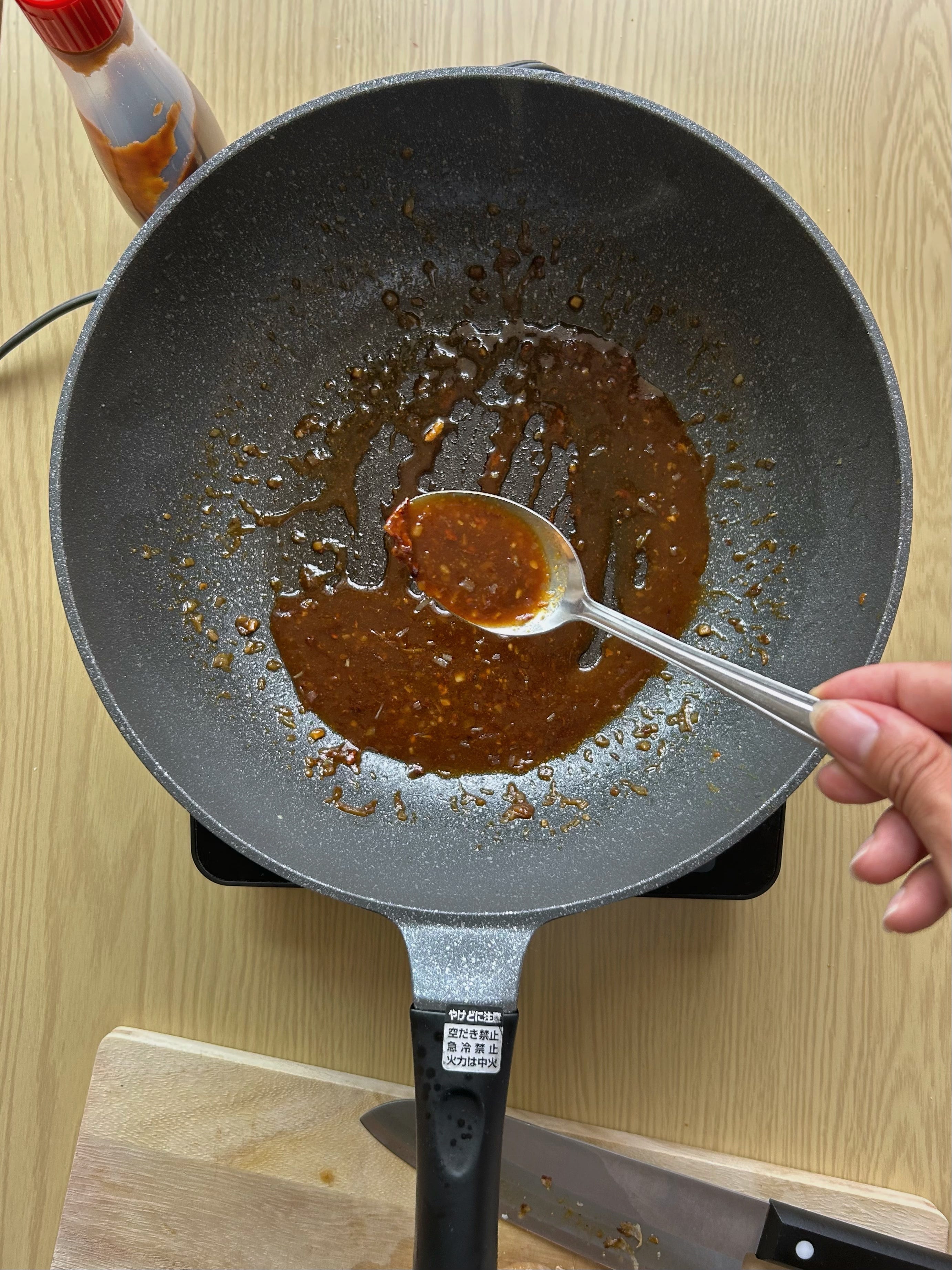 1. In a small bowl, combine your sauce ingredients: ¼ cup of chicken stock, 1 tbsp of lemon juice, 2 tbsp of Cabi’s Miso Glaze, 2 tbsp of mirin, 1 tsp of brown sugar, 1 tsp of soy sauce. Set aside.