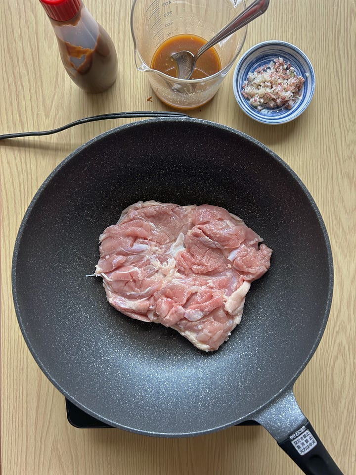 1-2 boneless, skin on chicken thighs, about 250 g in total